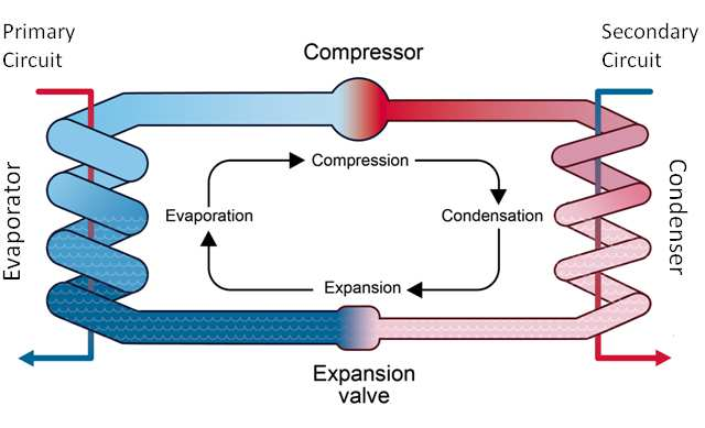 The operation of a typical industrial heat pump relies on the vapor-compression refrigeration cycle, which consists of four key stages executed in a closed loop
